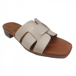 Sandalia de piel para mujer. Estilo pala con tacón bajo cuadrado de 3.5 cm