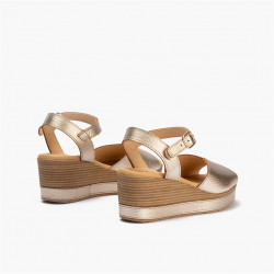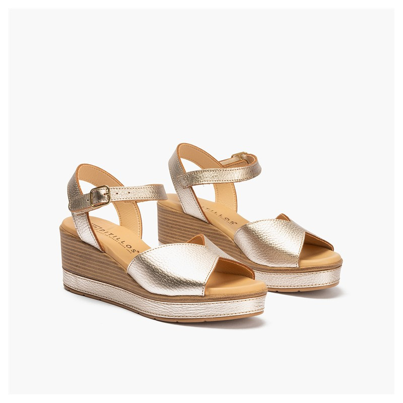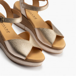 Sandalia de piel con cuña, pala lisa. Marca Pitillos.