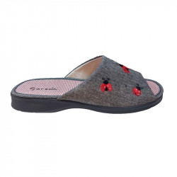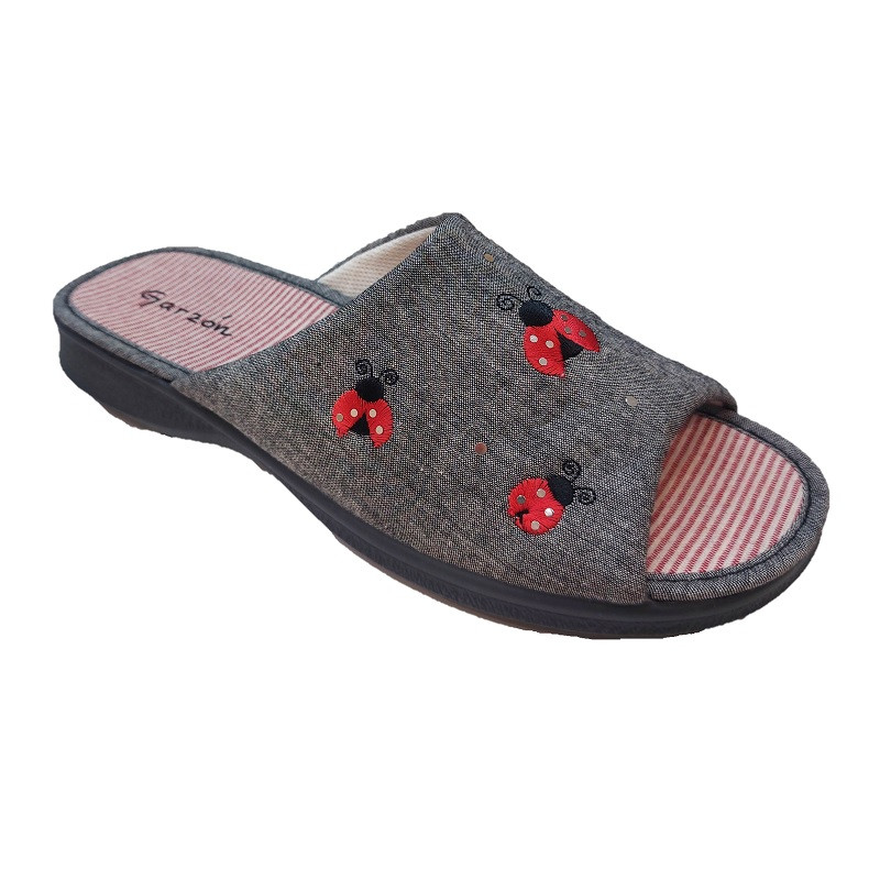 Color negro difuminado con bonitas mariquitas rojas bordadas.