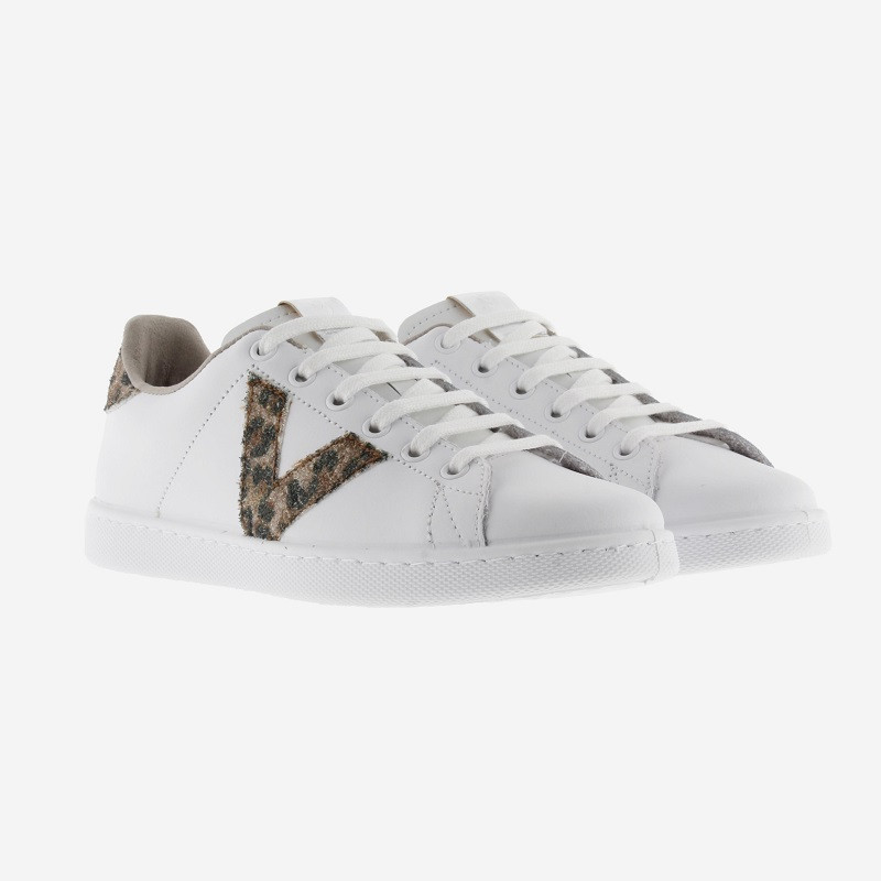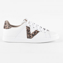 Zapatilla Piel Victoria Blanca Taupe 1125188 Leopardo