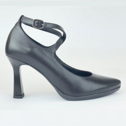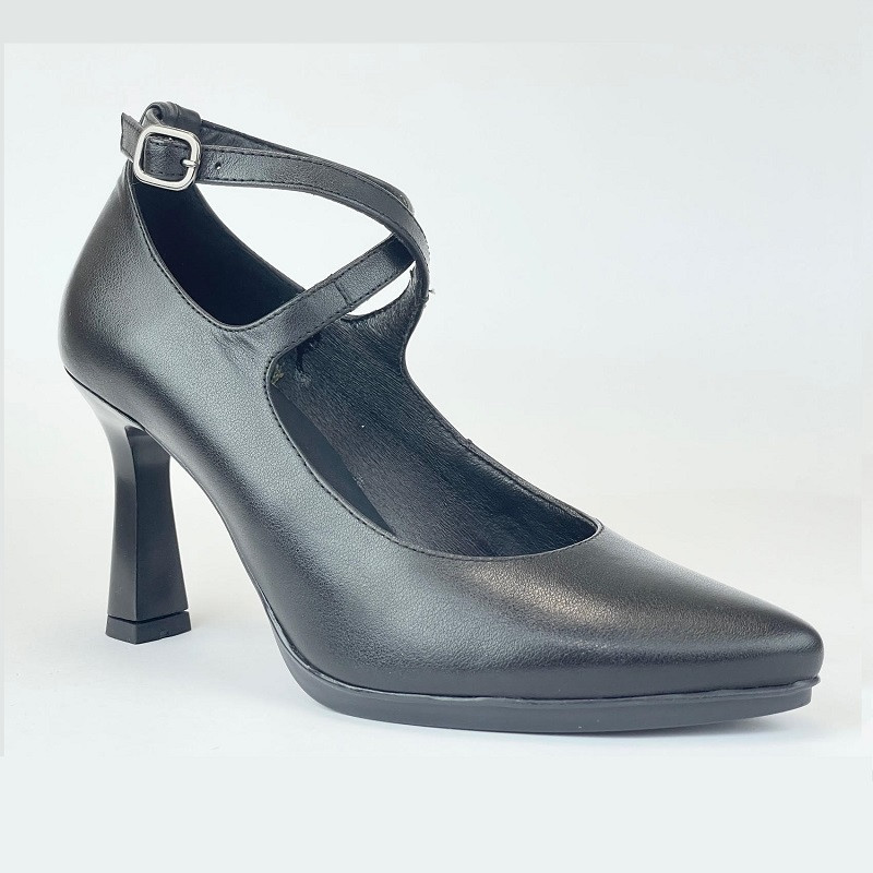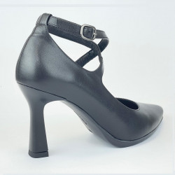 Zapato salón de piel para mujer. Correa cruzada con cierre hebilla que le aporta una sensualidad  y elegancia extra a tu look. Ergonómico, flexible y transpirable.