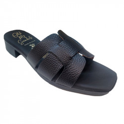 Sandalia de piel para mujer. Estilo pala con tacón bajo cuadrado de 3.5 cm